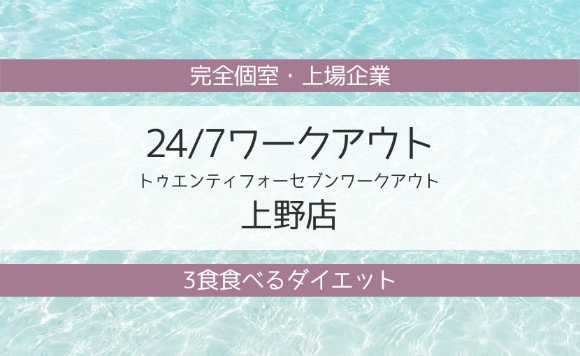 9.【24/7ワークアウト上野店】完全個室・上場企業・3食食べるダイエット